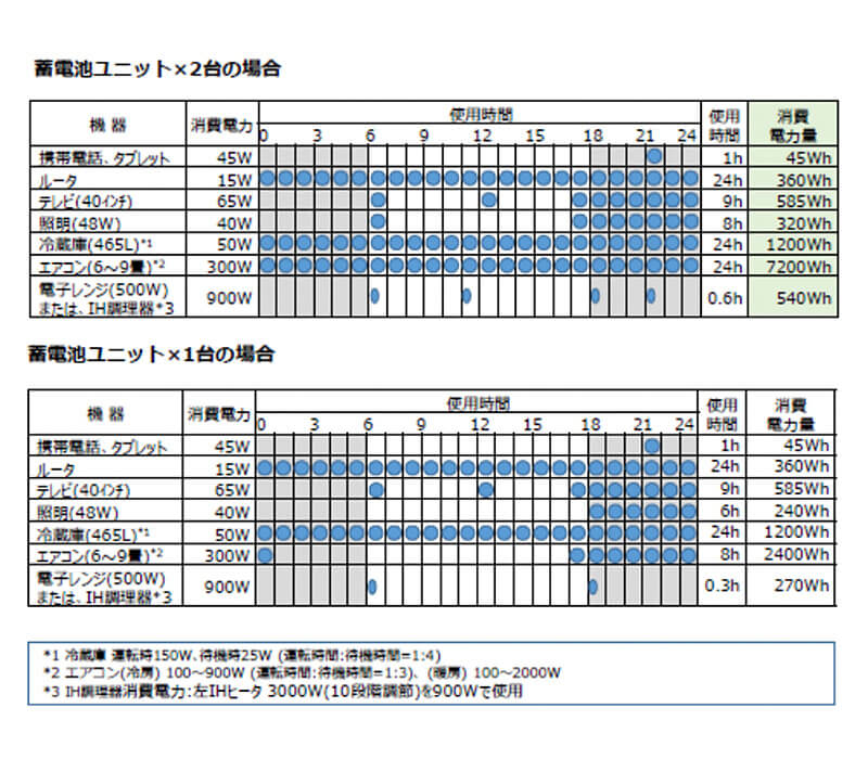 ただこれだけの大出力を使ってしまうと、すぐに充電していた蓄電池を使い切ってしまいますので、それに見合った蓄電容量が必要になります。